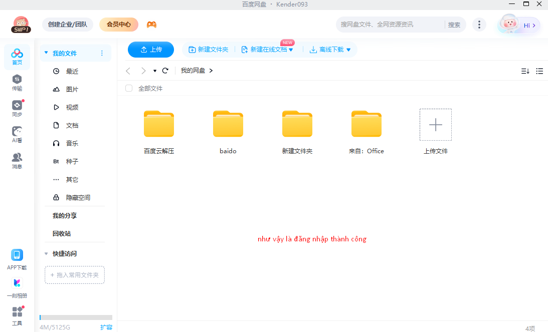 Bước 5: đăng nhập vào phần mêm baidu hoặc web ( lưu ý baidu chỉ cho tải file nhẹ dưới 50mb trực tiếp trên web nếu file bạn tải nặng hơn thì bắt buộc phải cài thêm phần mềm baidunetdisk để tải )