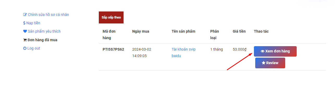 Bước 2: xem đơn hàng trong chi tiết sản phẩm