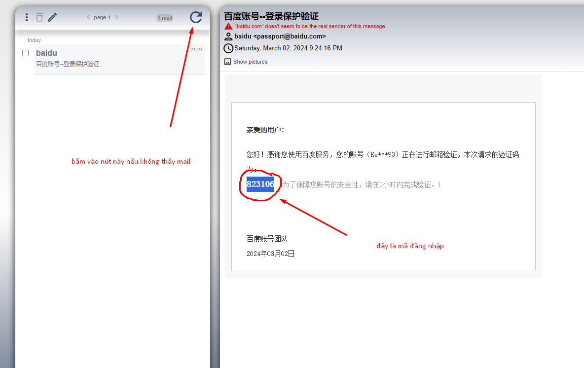 Bước 8: quay lại web yopmail.com bạn đã làm ở bước 1 và đợi mã về sẽ mất 1-5 phút để mã về. bạn có thể ấn nút load lại mail trên web yopmail nếu không thấy mã.